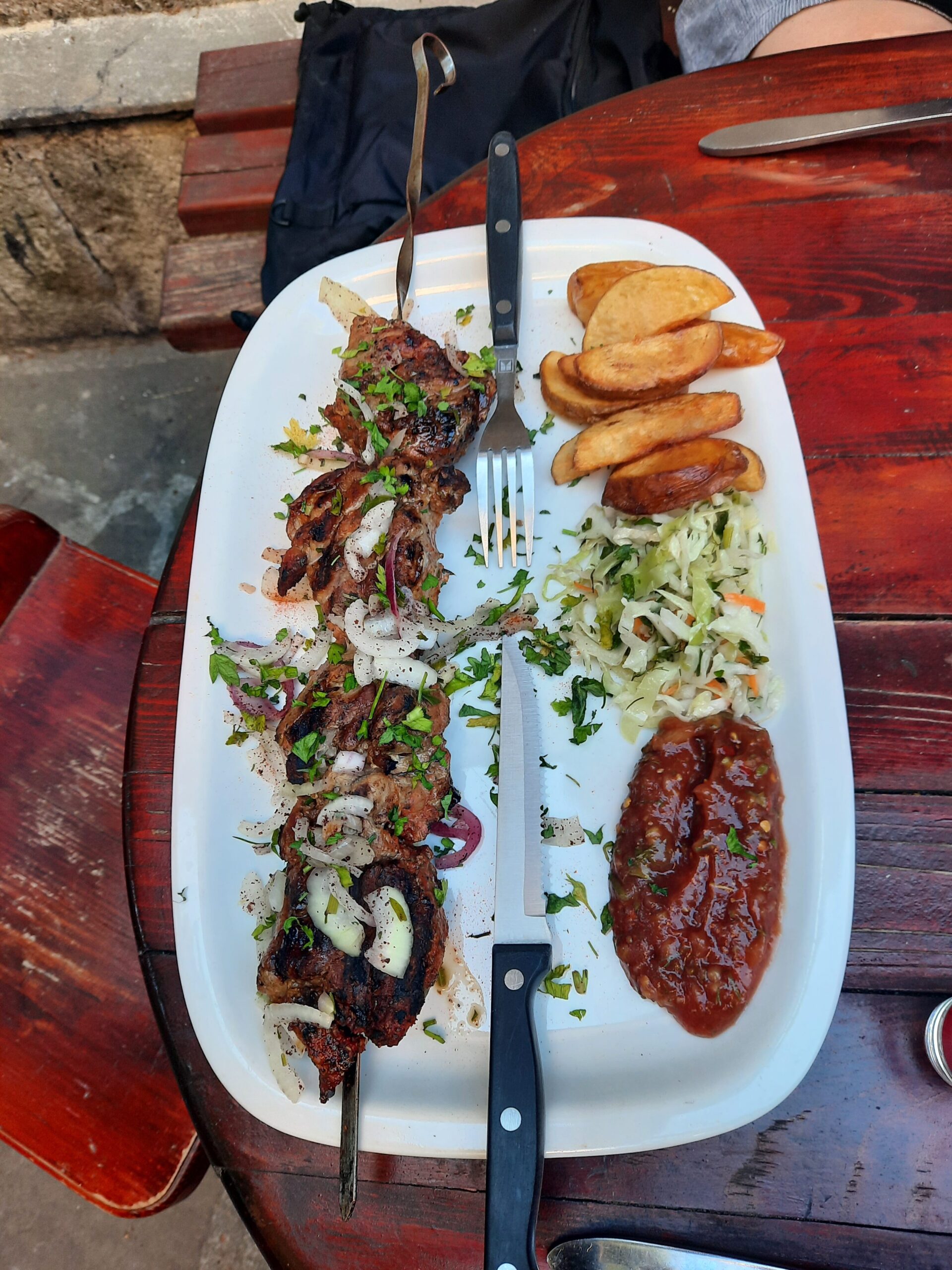 Zjadłyśmy sałatkę szopską, podpłomyk oraz szaszłyk wieprzowy. Jedzenie było naprawdę wyborne, a piwo orzeźwiające. Serdecznie polecam tą miejscówkę!